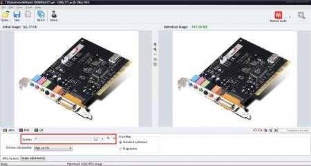 Досить зрушити повзунок на кілька пунктів (наприклад, зі 100 на 97) і розмір файлу jpeg значно зменшиться, але якість ви практично не втратите.