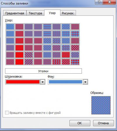 Візерунок – дозволяє вибрати візерунок, замість звичайного кольору заливки сторінки. Також ви можете вибрати колір штрихування і основи. Рідко використовується, оскільки немає можливості редагувати самі візерунки.