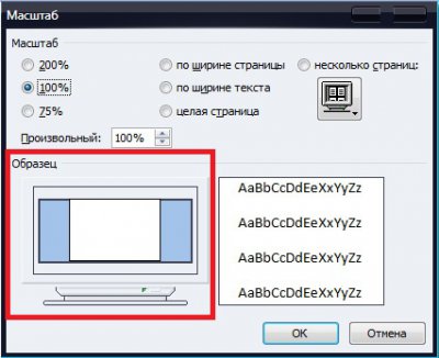 2. У ній ви побачите клітинку (рамку) «Масштаб» в якій можна здійснити зміни розмірів відображуваної сторінки на екрані.