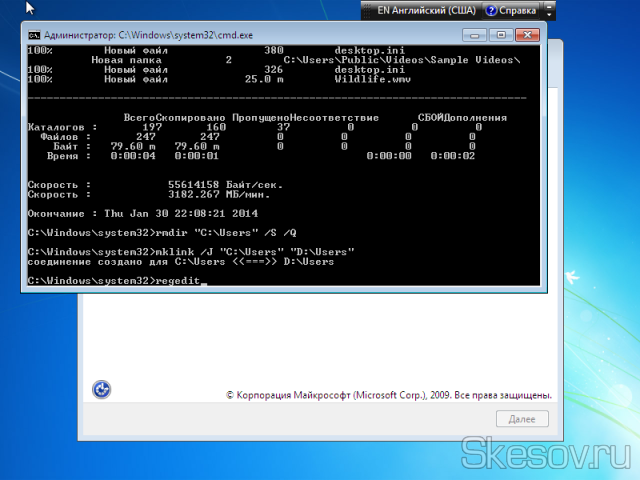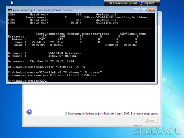 mklink /J “С:Users” “D:Users”