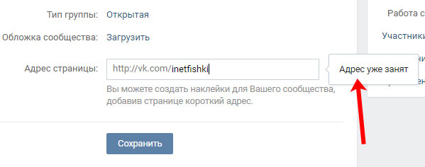 Я захотіла зробити посилання таку ж, як і назва моєї групи, але вона виявилася зайнята – з’явилася спливаюча напис «Адреса вже зайнятий».
