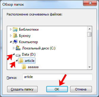У прикладі, всі викачані файли зберігатимуться на диску D: у папці article.
