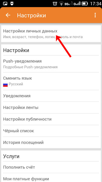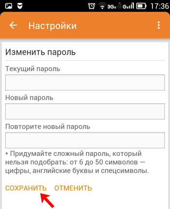 Як змінити пароль в Однокласниках мобільна версія для Android