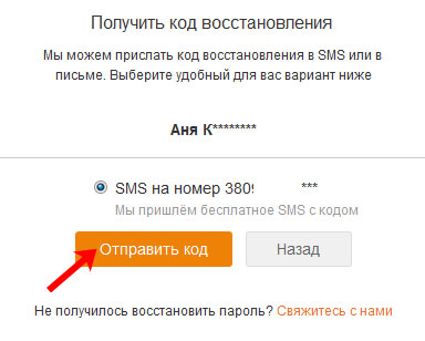 На наступній сторінці ви побачите ваше ім’я, як вас кличуть в Однокласниках, і нижче кнопочку «Відправити код». Натиснувши на неї, на вказаний номер, зовсім безкоштовно буде надіслано повідомлення.