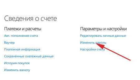 У нас відкривається сторінка з налаштуваннями, параметрами і відомостями про ваш обліковий запис skype. Гортаємо її до самого низу і знаходимо там посилання «Змінити пароль». На неї ми і натискаємо: