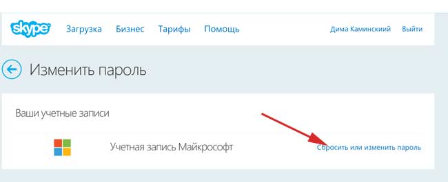 На наступному етапі нам підвантажується наша обліковий запис Microsoft, навпроти неї ми натискаємо на посилання «Скинути або змінити пароль»: