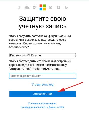 Тепер знову вводимо адресу своєї електронної пошти і тиснемо на кнопку «Відправити код»: