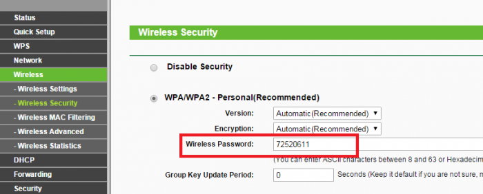 6. знайдіть параметр «Пароль» («Wireless password»). Введіть бажаний пароль;