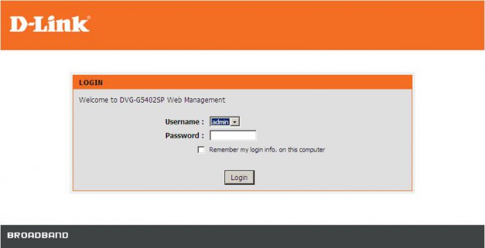 3. у вікні, введіть свої логін і пароль, щоб зробити вхід в меню. Login – admin password – залиште порожнім;