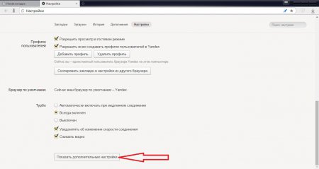 2. Відкриється нова вкладка «Налаштування». В ній вам необхідно знайти і клацнути по кнопці «Показати додаткові параметри». Щоб її знайти необхідно опуститися в самий низ вкладки, використовуючи колесо прокрутки.