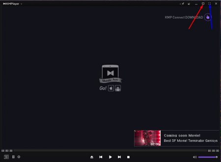 За замовчуванням вікно відеоплеєра KMPlayer має дуже маленький розмір. Тому перш ніж змінювати розмір відео необхідно розширити вікно плеєра. Це можна за допомогою: