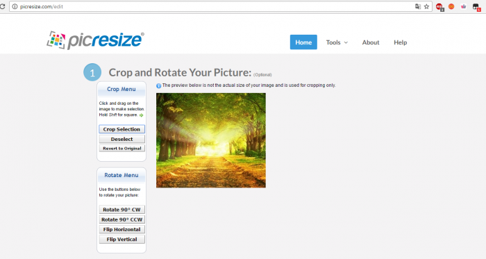 Не менш популярний сервіс для роботи з зображеннями. У числі функцій цього сервісу, є ще й ті, які допоможуть в монтажі фото, а також редагування його параметрів, включаючи зміну розміру.