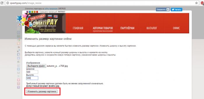 Сервіс є не просто швидким, а ультрашвидкі і може перетворити зображення без втрати якості. На основній сторінці виберете файл. Встановіть висоту і ширину файлу. Підтвердіть дію кнопці «Змінити». Через деякий час зберігайте результат.