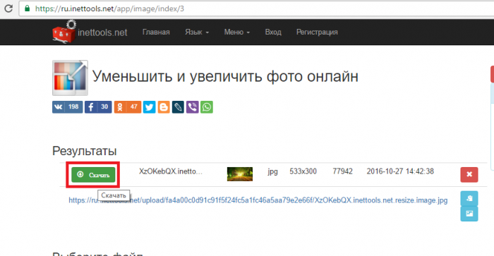Inet Tools зручний тим, що змінюючи один параметр, під нього можна підігнати кілька фотографій. Додайте потрібні файли в спеціальну сервісну вікно, встановіть потрібні параметри, натисніть на кнопку «Змінити…». Після збереження – скачайте змінені файли.