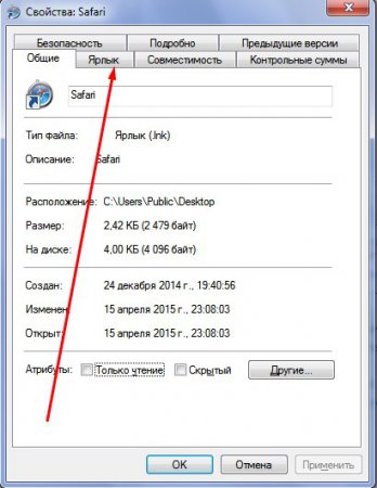 Відкриється відповідно вікно властивостей. Переходимо у вкладку “Ярлик“.