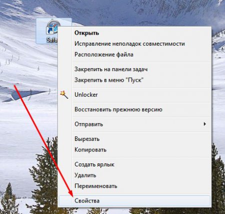 . Для прикладу я візьму ярлик браузера Safari. Тиснемо по ньому правою кнопкою миші і в контекстному меню натискаємо “Властивості“.