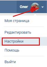 Натискаємо на верхнє меню і з випав списку вибираємо пункт «Налаштування»: