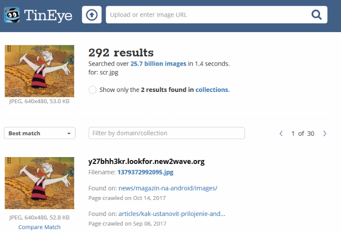 TinEye — зручна пошукова система по знаходженню схожих картинок по фотографії