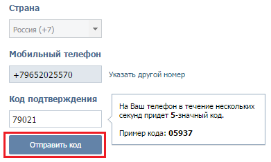 Після того, як номер був введений, необхідно запросити на мобільний телефон код підтвердження. Ця процедура необхідна для того, щоб верифікувати номер телефону. Його можна буде згодом використовувати для відновлення пароля або розблокування облікового запису в соціальній мережі.