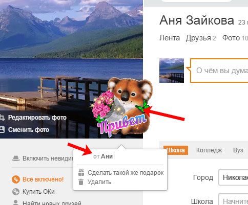 Відправити подарунок в Однокласниках не другові