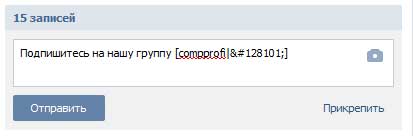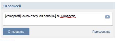 На стіні своєї тестової сторінки Вконтакті я в поле вводу пишу наступний запис: