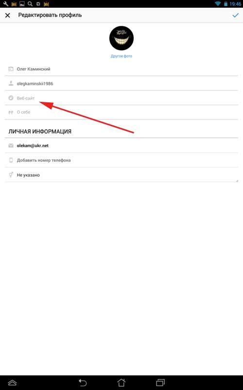 Але не варто впадати у відчай. Все-таки одну ссилочку та ще дуже навіть помітну впихнути можна. Так що, якщо у вас є свій сайт або ж ви хочете пропіарити свою сторінку в іншій соціальній мережі, то дивіться, як це робиться.