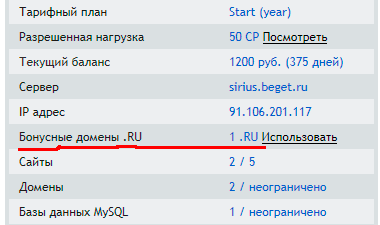 бонусний домен в зоні .ru . Якщо ви ще жодного домену не
