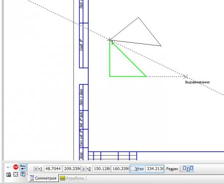 Тепер же вам необхідно вказати дві точки осі симетрії. Тобто початкову і кінцеву. Кут виставити автоматично. Все це виконується за допомогою курсору миші або ж координати точок можна ввести вручну на панелі властивостей.