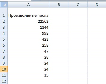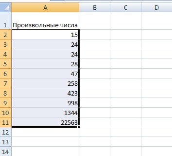Як ви бачите на зображенні вище – всі довільні числа, тобто «взяті з голови». Для початку зробимо їх сортування за зростанням.