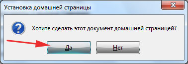 У нас вискакує повідомлення, де нас запитують, а чи не хочемо ми зробити цей документ домашньою сторінкою? Ми тиснемо на кнопку «Так».