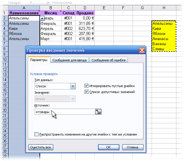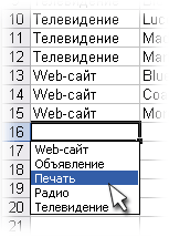 Стандартні переліків з наповненням дозволяють користувачеві перевести процес введення даних на автоматичних режим. При наведенні курсора у вікні з’явиться кілька варіантів її значення. Вам залишається лише зробити вибір необхідних значень для заповнення.