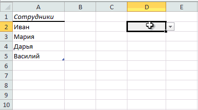 Розкривний список у клітинках (Excel 2010).