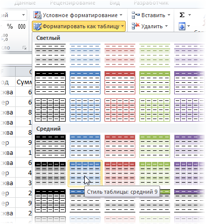 – Для початку потрібно виділення потрібних клітинок, після цього слід натиснути на кнопку, розташованої в головній вкладці “Форматувати як таблицю”;
