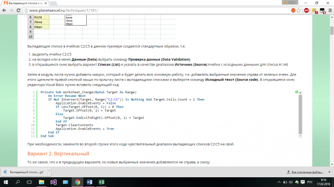 Загалом, після цього у вас з’явиться можливість скористатися класичним горизонтальним списком з вбудованою функцією мультівибора. Але для автоматичного заповнення, потрібно створення макросу з вихідним кодом, показаному на малюнку нижче.