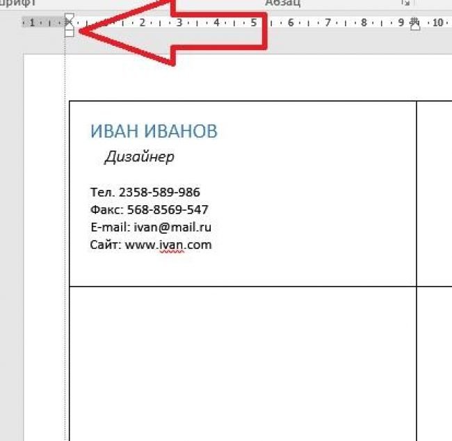 Тепер створюємо текст візиток. Але для початку выравняйте всі символи за допомогою лінійки у ворді