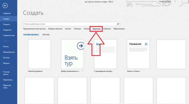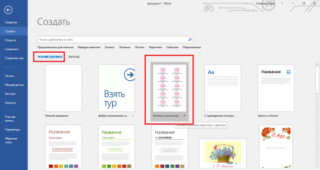 За допомогою вбудованих в Word шаблонів і їх звичайних елементів на спеціальній панелі Ви отримаєте можливість створювати різного роду документи, в тому числі і картки для себе або якої-небудь компанії.