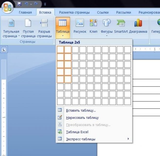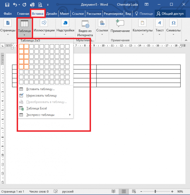 Тепер таким же чином, як і раніше, створіть таблицю в 2 стовпця і 5 рядків.