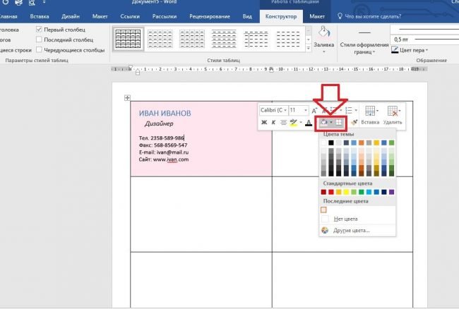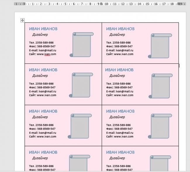 4. Таблиці для створення візиток в Ворд