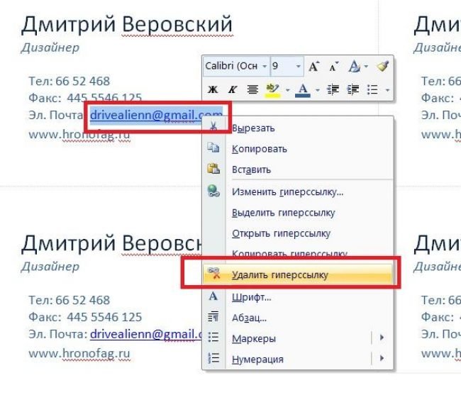 Створення візиток Word 2007