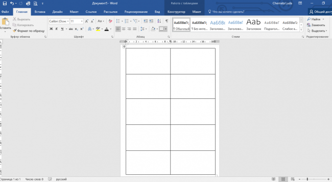 Створена Вами таблиця стане контуром для ваших карток. Розтягніть створену таблицю на весь аркуш.