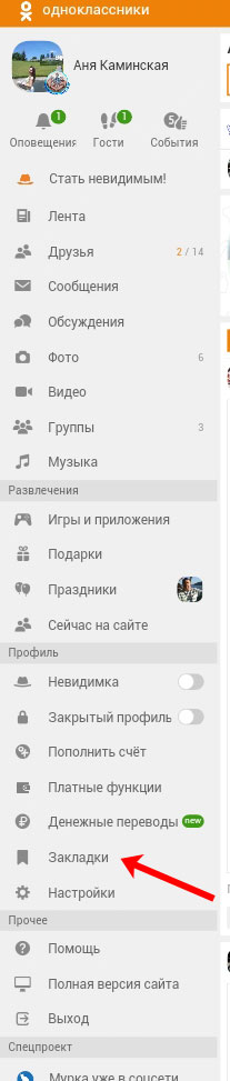 Тепер давайте розбиратися, де знаходяться закладки в Однокласниках.