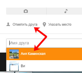 Як відзначити одного в замітці в “Однокласниках” і вказати місце