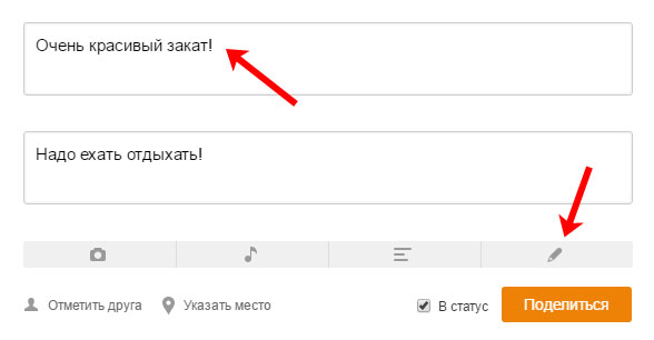 Як поставити замітку в статус в Однокласниках