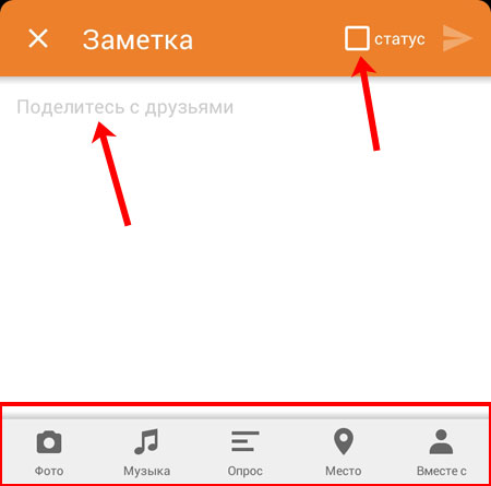 Як написати замітку в Однокласниках з телефону