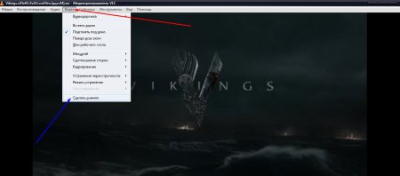 Давайте не буде довго говорити про принади цієї функції, а перейдемо безпосередньо до інструкції. Для того, щоб зробити скріншот в VLC необхідно на панелі інструментів натисніть кнопку «Відео» – «Зробити знімок».
