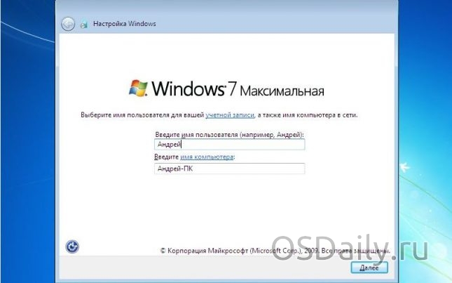 - Установник продовжує свою роботу, як правило, нічого про нас не вимагаючи. Якщо вискакують віконця для вказівки первинних настройок, слідуємо інструкції і виробляємо налаштування. Налаштування зазвичай полягають у присвоєнні імені комп’ютера, ім’я облікового запису користувача, налаштування часу і дати, часового поясу і розкладки клавіатури. Нічого складного в цьому немає і виконати дані установки зможе кожен, хто вміє читати.