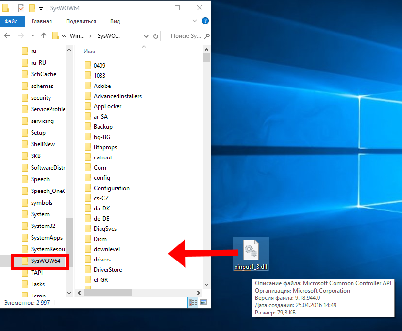 Отже, скачати xinput1_3.dll для Windows 7 64 можна звідси. Далі розпакуйте за навантажений на ПК архів (найбільш найчастіше DLL-ки поширюються в, так би мовити, архівному стані), потім помістіть файл в директорію — C:windowsSysWOW64.