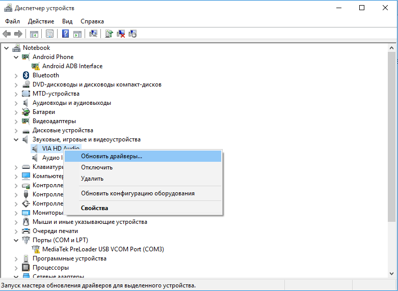 Переходимо в «Диспетчер завдань», знаходимо пристрій, драйвера якого потрібно оновити, натисніть по ньому правою кнопкою миші і даємо команду «Оновити драйвери».