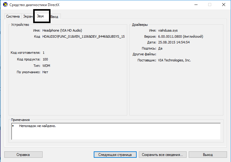 З’являється вікно «Засіб діагностики», переходимо на вкладку «Звук».