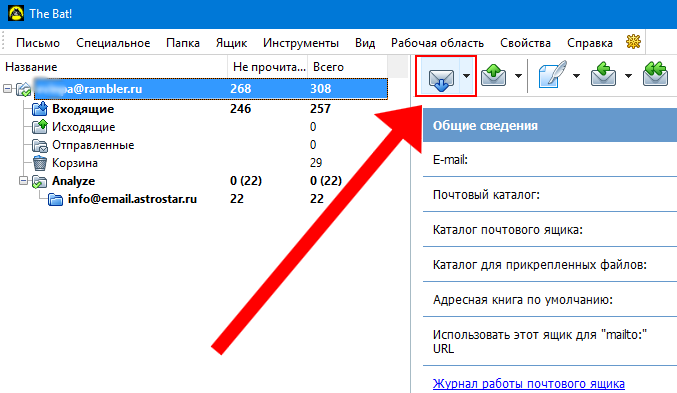 Отже, скачать «The Bat» можна звідси. Процес установки поштової програми взагалі не вимагає яких-небудь особливих знань від користувача і займає всього кілька секунд часу на процес своєї інсталяції. Однак при первинному запуску даного софта, потрібно внести ряд змін в його налаштування. Зробити це необхідно для того, щоб програма змогла безперешкодно працювати з конкретним поштовим сервером, що в свою чергу дозволить надалі з особливим комфортом проводити користувачу вхід на пошту Рамблер.